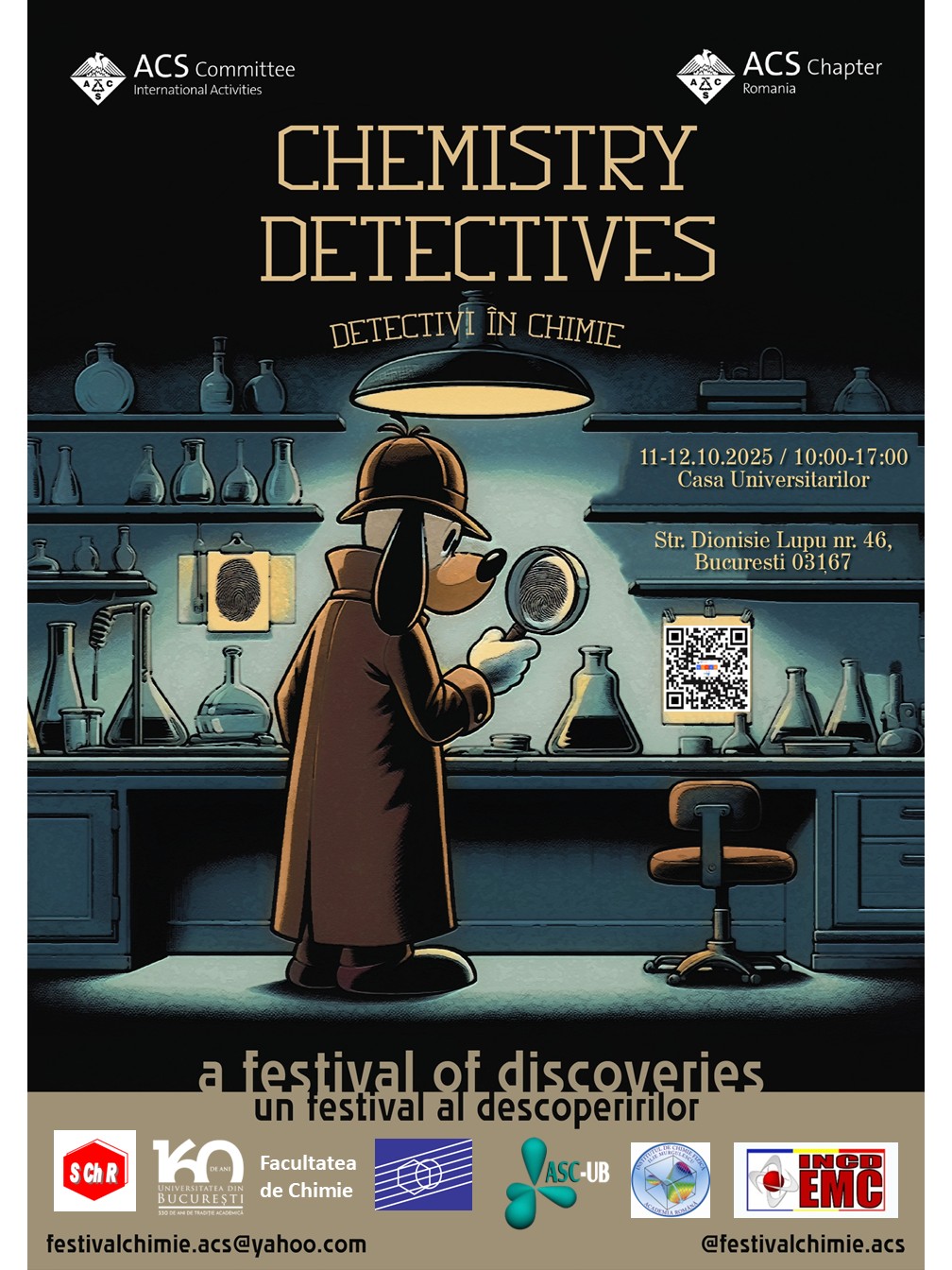 Ne va onora prezenţa dumneavoastră şi mulţumim anticipat atenţiei acordate demersului nostru în promovarea chimiei. Evenimentul este organizat de American Chemical Society (ACS) Romanian ACS International Chapter, în colaborare cu Societatea de Chimie din Romania, Universitatea din Bucureşti, Facultatea de Chimie, Asociaţia Studenţilor Chimiști din Universitatea din București, Institutul de Chimie Fizică I. G. Murgulescu, București, PATLAB.