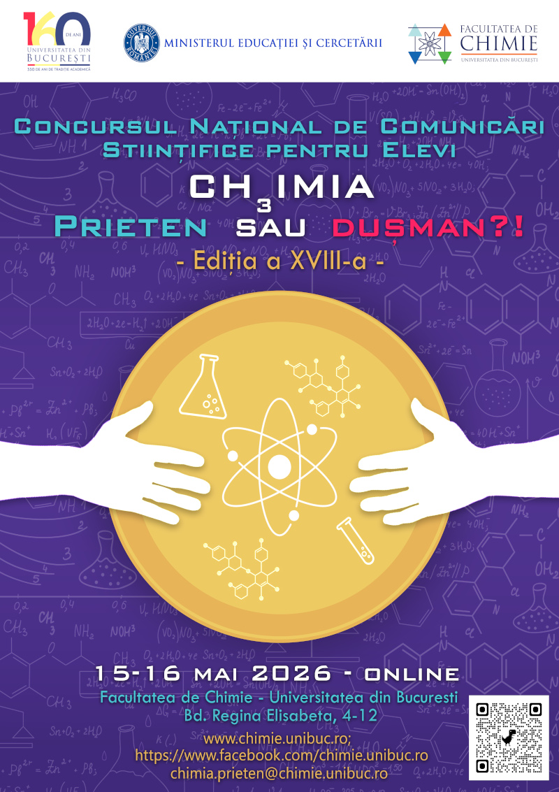 a Concursului Naţional de Comunicări Ştiinţifice pentru elevi - disciplina CHIMIE - ”CHIMIA - PRIETEN sau duşman?!” ediția a XVIII-a, 2026