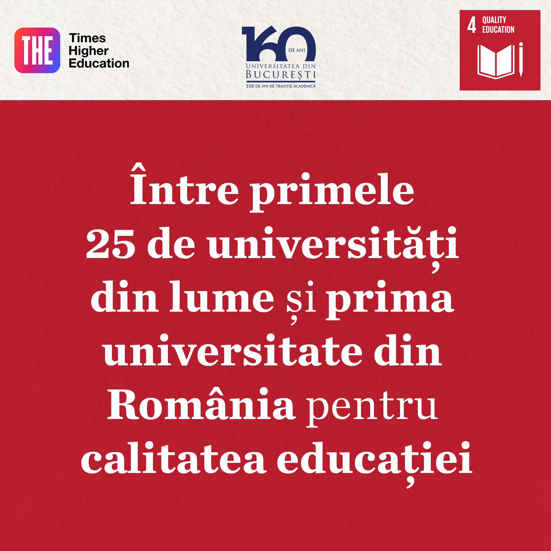 Prin această performanță fără precedent, Universitatea din București își reconfirmă statutul de lider al învățământului superior din România dovedind că este un partener academic prestigios la nivel internațional. Clasarea în primele 100 de universități din lume în domeniul dezvoltării durabile reflectă consecvența cu care UB promovează valori precum echitatea, responsabilitatea socială, educația de calitate și implicarea activă în viața comunității. Acest rezultat este totodată un angajament ferm pentru viitor: continuăm să construim o universitate ancorată în realitate, care răspunde și se adaptează nevoilor societății, deschisă și capabilă să răspundă provocărilor globale prin cunoaștere, colaborare și inovație.