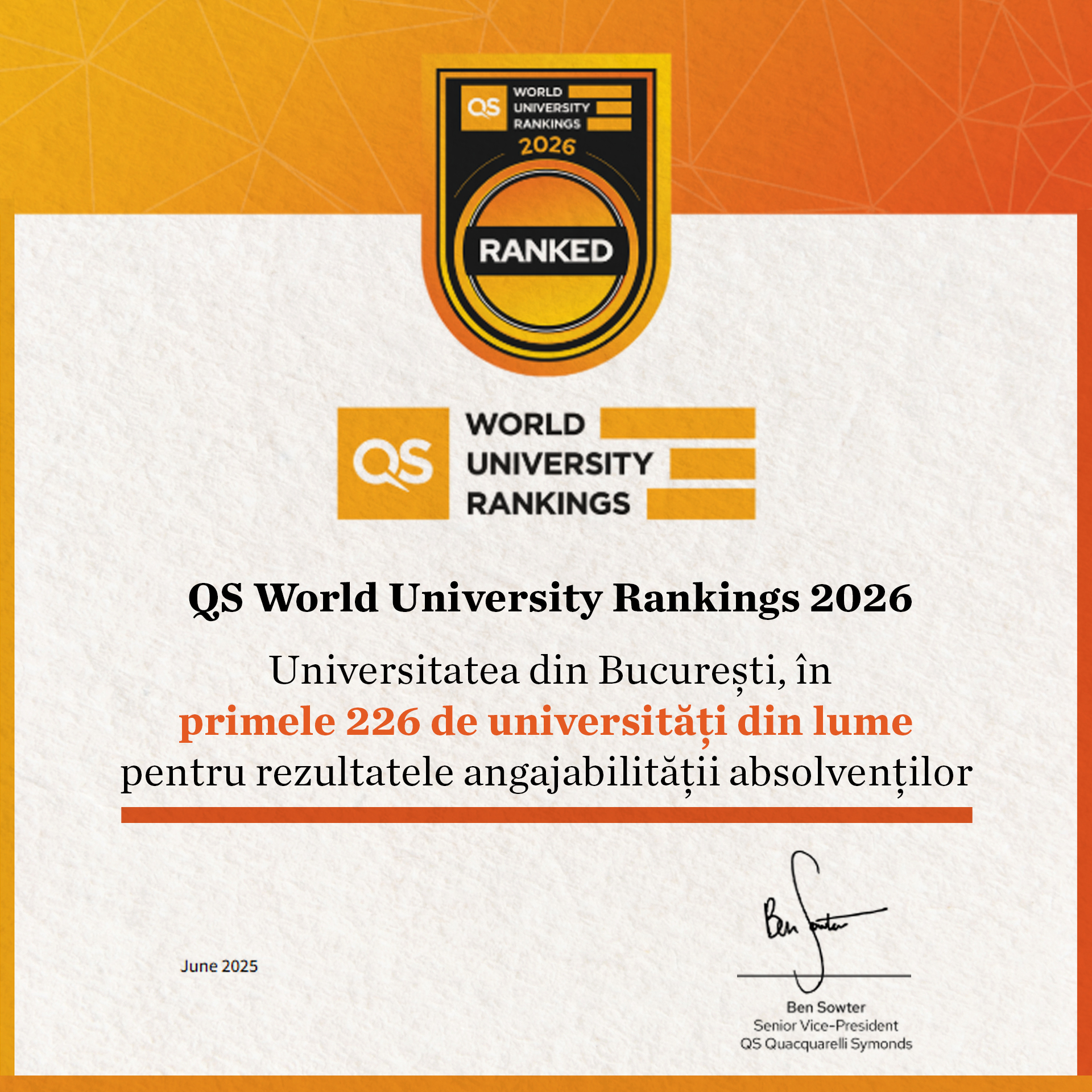 De altfel, așa cum arată datele celei mai recente ediții a clasamentului QS World University Rankings 2026, absolvenții Universității din București reușesc, într-o foarte mare măsură (81,1%), să se angajeze 7 – 11 luni de la finalizarea studiilor.