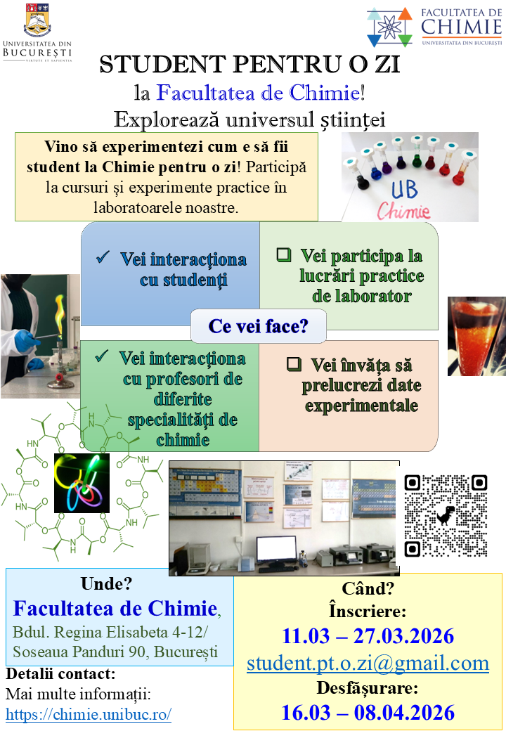 STUDENT PENTRU O ZI la FACULTATEA DE CHIMIE, UNIVERSITATEA DIN BUCUREȘTI - ediția a IV-a (sem. II 2025-2026)
