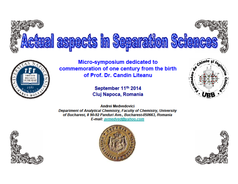 Plenary lecture at “Micro-symposium dedicated to commemoration of one century from the birth of Prof. Dr. Candin Liteanu” Cluj-Napoca, September 11th, 2014