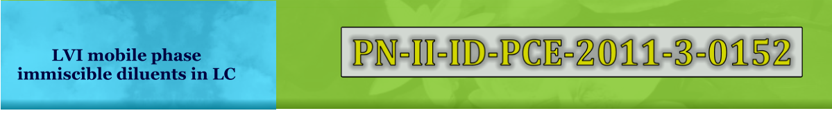 Project descriptionScientific context and motivation.More often, samples submitted to the chemical analysis are characterized by three main features: a) complex matrices; b); very low amounts of targetanalytes to be assayed; c) availability of small sample amounts.The extreme complexity of the matrixes is usually solved by the use of a separation technique, chromatography being frequently considered for such a goal.Even considering the high separation power of the chromatographic processes, additional sample preparation techniques are often required to isolate analytesfrom matrixes potentially affecting the success of the chromatographic separation and/or detection. Usually, analytes are isolated in organic solvents (i.e. afterliquid-liquid or solid phase extraction procedures), the compatibility of the extraction media with the mobile phase being essential for the success of theseparation.The assay of trace amounts from target compounds is solved through the use of sensitive (and selective, as selectivity naturally enhances on sensitivitythrough reduction of the background noise amplitude) detectors. In some instances, the instrumental sensitivity still may be found as inadequate, andconsequently concentration techniques are required to ensure the required sensitivity imposed thresholds. In such conditions, isolation techniques involveconcentration steps (selective removal of the isolation media until a dried residue is obtained, followed by its re-dissolution in an appropriate volume of adiluent).The simplest and the most straightforward way for enhancing on the sensitivity of an analytical chromatographic method is the increase of the injectedsample volume. The golden rule of the thumb forlarge volume injection (LVI) in liquid chromatography is that the sample diluent should be entirely miscible toand weaker than the mobile phase composition at the beginning of the separation [1,2]. Effects of poorly controlled LVI conditions materialize in peak broadeningand/or symmetry distortions [3,4]. Although the phenomena of peak focusing after large volume injection are more often discussed in terms of the differentsolubilities of the analytes in the sample diluent and the mobile phase, additional factors such as pH, composition (i.e. presence or absence of an ion pair agent)and relative viscosities should also be considered [5-7]. Old concepts, such as elutropic character or solvent strength are still being used in practice, but they donot offer a good insight of the complex process occurring during injection and retention processes within the chromatographic column. The role of sample solventstrength in fast-gradient LC has been emphasized recently by Layne et al [8], demonstrating that earlier-eluting analytes are much more affected by the samplesolvent strength than the later-eluting ones.Some practical solutions to accommodate stronger diluents to large volume injection - reversed phase liquid chromatography (RPLC) through applicationof pulsed elution gradients [9] or focusing analytes in the stationary phase have been already proposed [10].Injection of diluents stronger than the mobile phase was first pioneered by Loesser [11].The possibility of LVI of diluents non-miscible with the mobile phase in RPLC was investigated for the first time by our team, some of the major theoreticalaspects being addressed in ref. [12]. Two points of view are usually taken into account when discussing the RP separation mechanism: the liquid-liquid partitionand the adsorption models. The first approach relies on explanation of the influence of various parameters (pH, organic modifier nature/content, salting effects)on the retention parameters (retention time, capacity factors, peak symmetry). However, assumption that the retention takes place mainly as an adsorptionprocess has found agreement in many experiments, and, for instance, Guiochon and coworkers successfully developed many theoretic approaches on the topic[13-15]. From the experimental point of view, LVI of immiscible diluents leads to a progresive reduction of the retention of the analyte A with the increase of theinjection volume [17, 18]. A linear functional dependence between the retention factor (kA) of the analyte and the injected volume (Vinj) is thus obtained. Assumingthe partion model of RP separation mechanism, the transfer of the entire volume of diluent into the hydrocarbonaceous coverage of the surface of the silicagelbased material after injection results in creation of a „new” stationary phase, with a higher carbon content, available for the analyte A. In such a case, the volumeof the stationary phase (Vst) would be increased to and consequently the fundamental relationship in LC:(1)would lead to a higher retention (a higher capacity factor – kA), while the equilibrium constant KAcould be fairly considered constant. The stationary phase ratioVst/Vm would increase with the increase of the diluent volume loaded to the column. Nevertheless, the experiments revealed the oposite situation.The adsorption mechanism starts from the equilibria involving interactions between the hydrocarbonaceus ligand, denoted L (i.e. hydrocarbonate chainbound on the silicagel surface), the molecules of the diluent and the target analyte. The analyte (A) diffuses out of the injection plug (the diluent S) in the mobilephase (m), according to equilibrium (2). The analyte and the diluent are competing for adsorption to the hydrocarbonaceous ligand in the stationary phase (L),according to following processes (3) and (4):(2)(3)(4)where st, m indexes refer to the stationary and mobile phases, respectively.Due to the high amount of S loaded in the column and its higher hydrophobic character compared to A, equilibrium (2) is shifted towards right andequilibrium (3) toward left, as long as the entire amount of the diluent is adsorbed onto L. When the diluent has increased viscosity than the mobile phase, thelow viscosity mobile phase penetrates into the viscous p