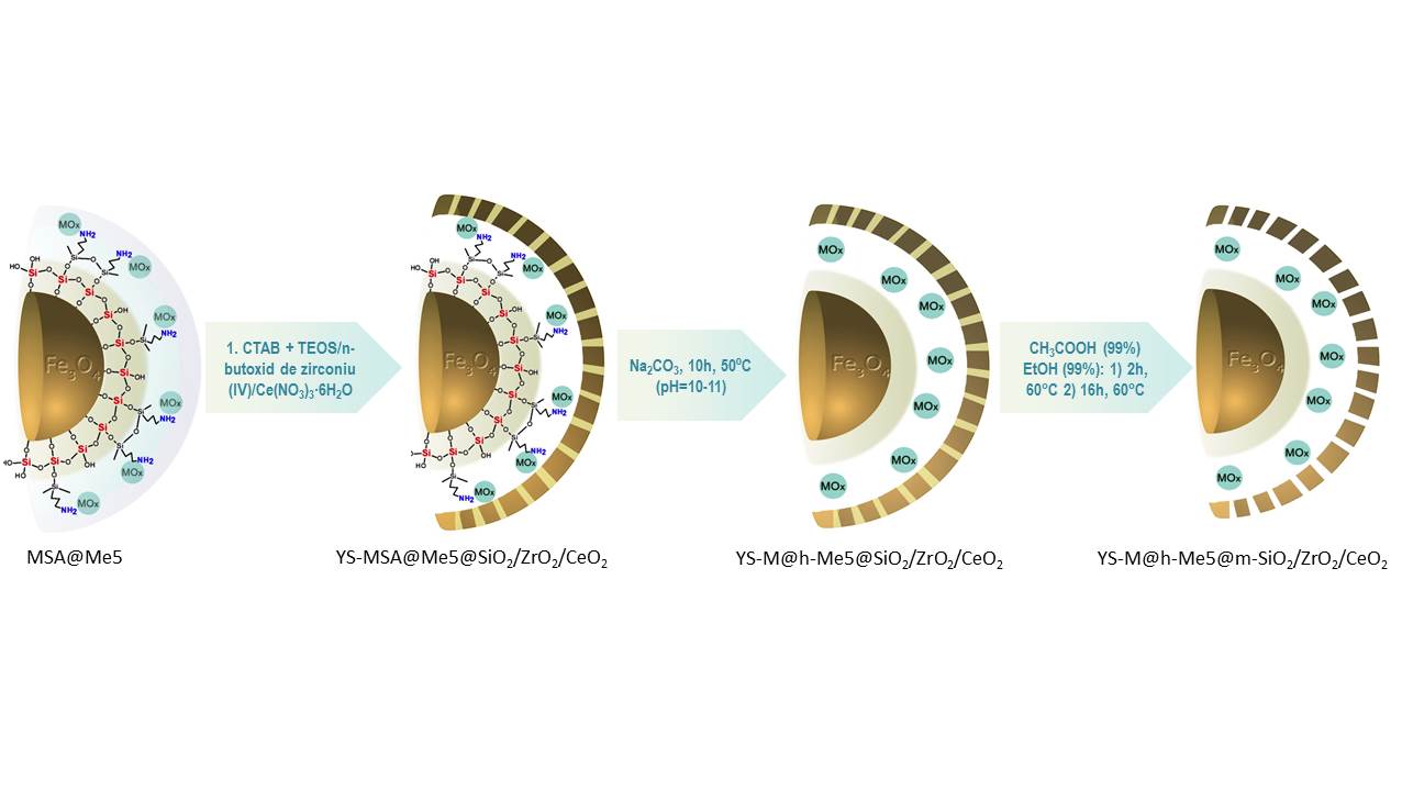 Activity 2.1. Synthesis of bimetallic amino-functionalized „core-shell”catalysts, using magnetite as „core” and SiO2, ZrO2 or CeO2 functionalized with APTES as „shell”.
