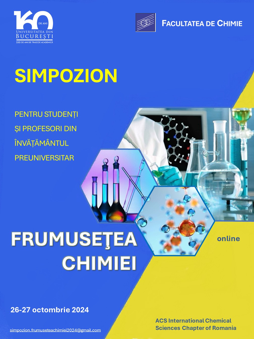 Evenimentul va avea loc exclusiv online. Link-ul de acces va fi anunțat pe site-ul Facultății de Chimie, Universitatea din București.