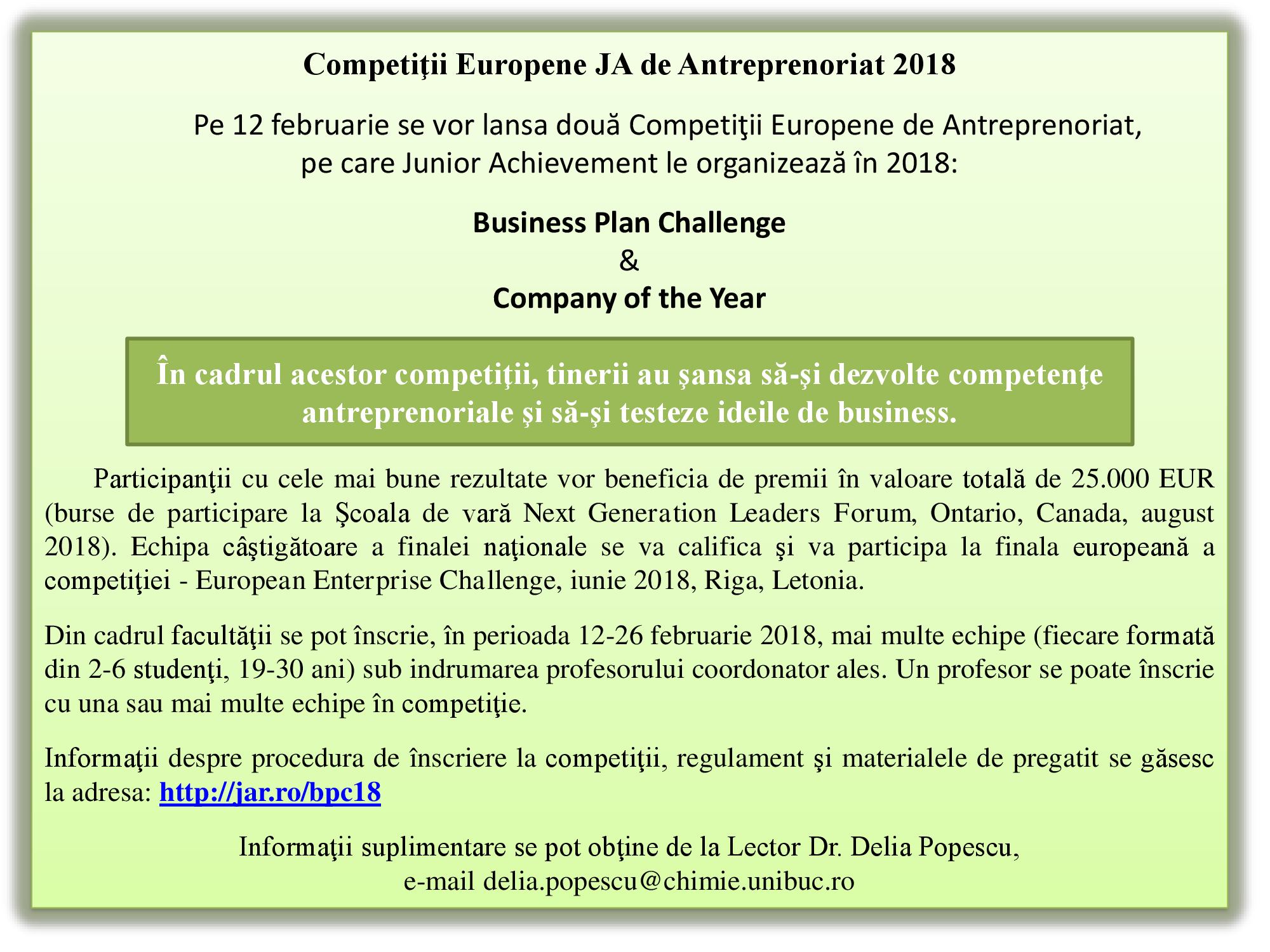 LANSARE Competiții Europene JA de Antreprenoriat 2018