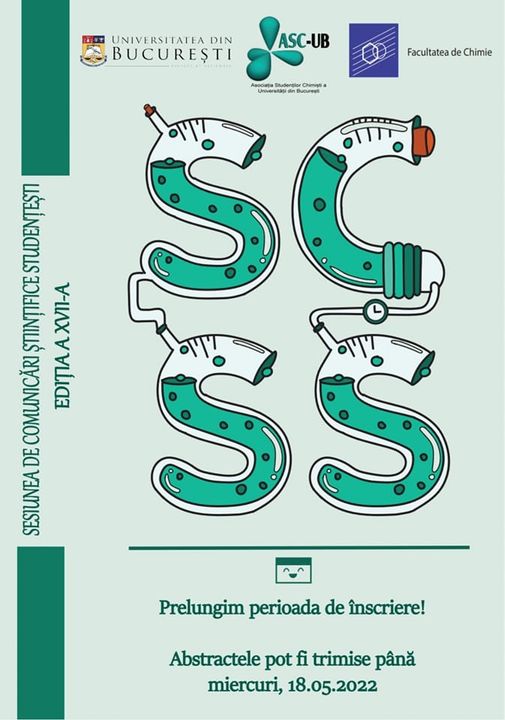 Asociația Studenților Chimiști a Universității din București (ASC-UB) și Facultatea de Chimie organizează, în perioada 27-28 mai 2022, cea de-a XVII-a ediție a Sesiunii de Comunicări Științifice Studențești (SCSS 2022).