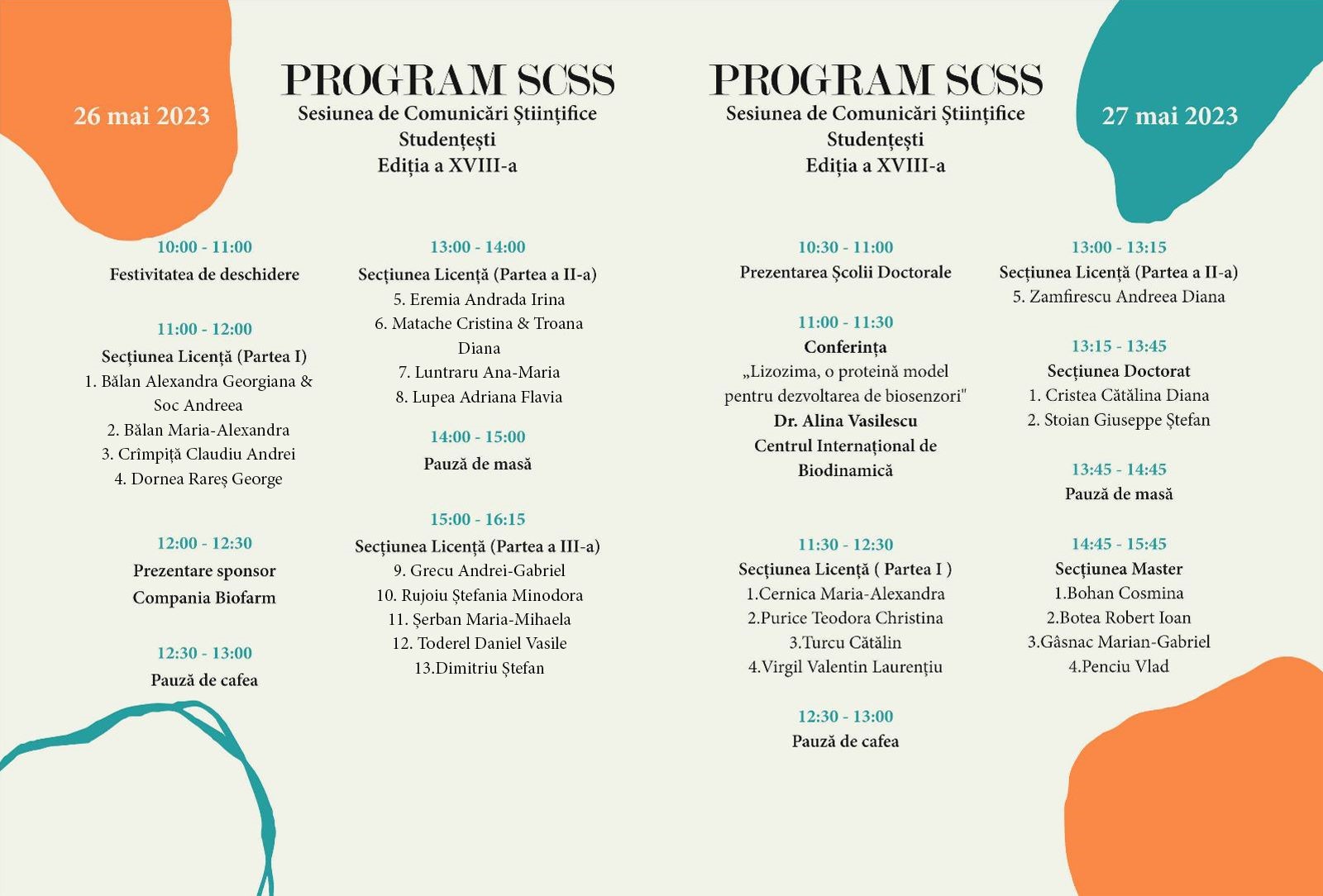Studenții înscriși la cea de a XVIII- a ediție a SCSS sunt rugați să transmită prezentarea în format ppt prin e-mail la adresa