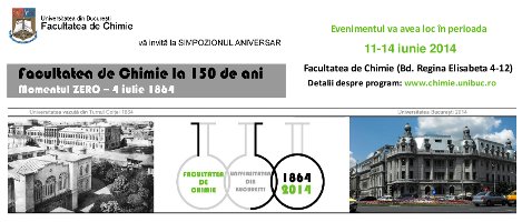 Cu acest prilej, Facultatea de Chimie a Universităţii din Bucureşti marchează cei 150 de ani de la înfiinţare, printr-o serie de evenimente aniversare, organizate în perioada 11- 14 iunie 2014. Simpozionul aniversar dedicat trecutului, prezentului și viitorului Facultății de Chimie cuprinde urmatoarele evenimente: