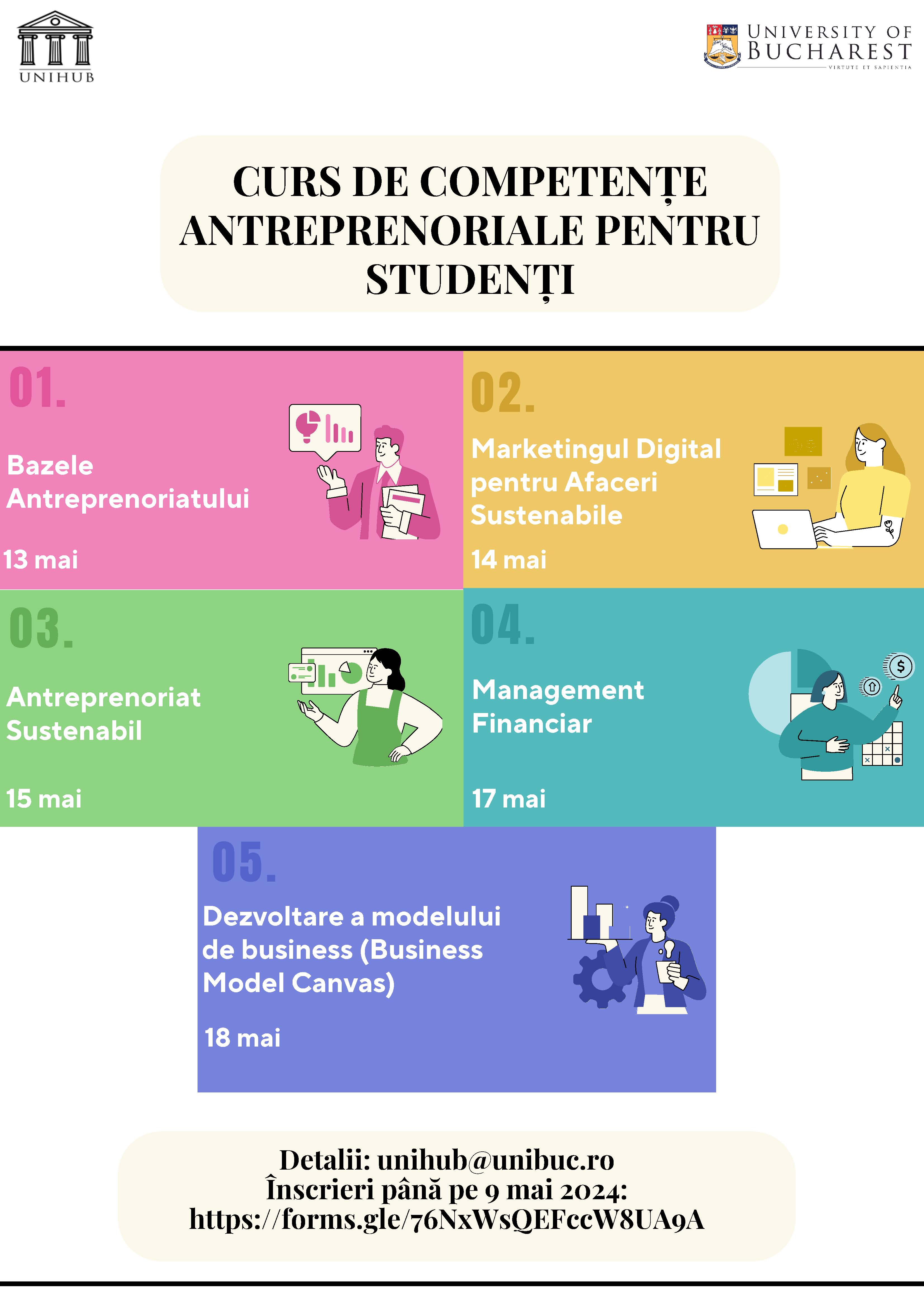Link-ul cu toate informațiile necesare: https://hub.unibuc.ro/invata-sa-gandesti-si-sa-actionezi-ca-un-antreprenor-curs-de-competente-antreprenoriale-la-universitatea-din-bucuresti/