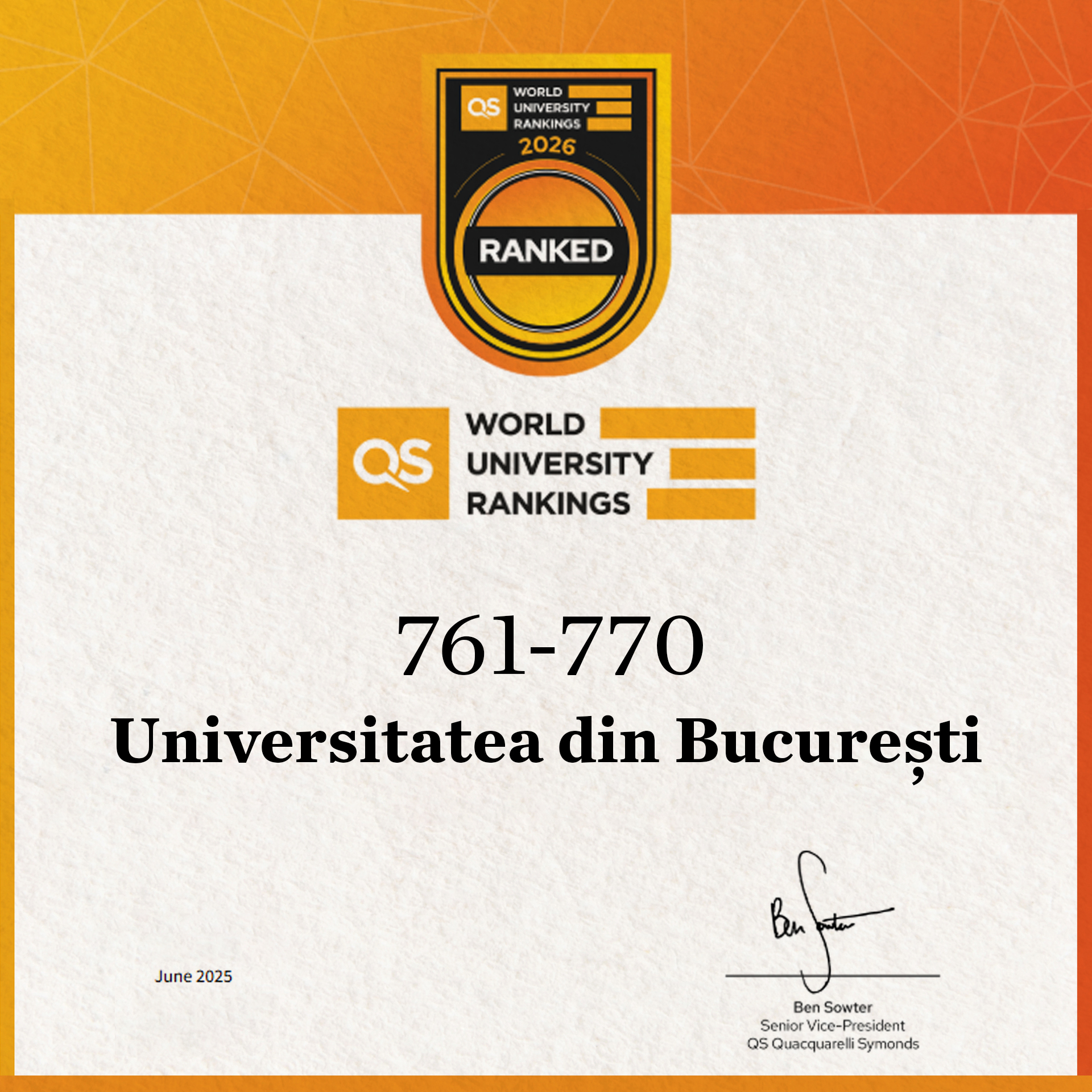 Universitatea din București își reconfirmă poziția de lider al învățământului superior românesc, conform celei mai recente ediții a clasamentului QS World University Rankings 2026, dată publicității astăzi, 19 iunie 2025. La nivel mondial, Universitatea din București se clasează în intervalul 761 – 770, marcând o evoluție semnificativă față de ediția precedentă (801–850) și obținând unele dintre cele mai bune rezultate din ultimul deceniu.
