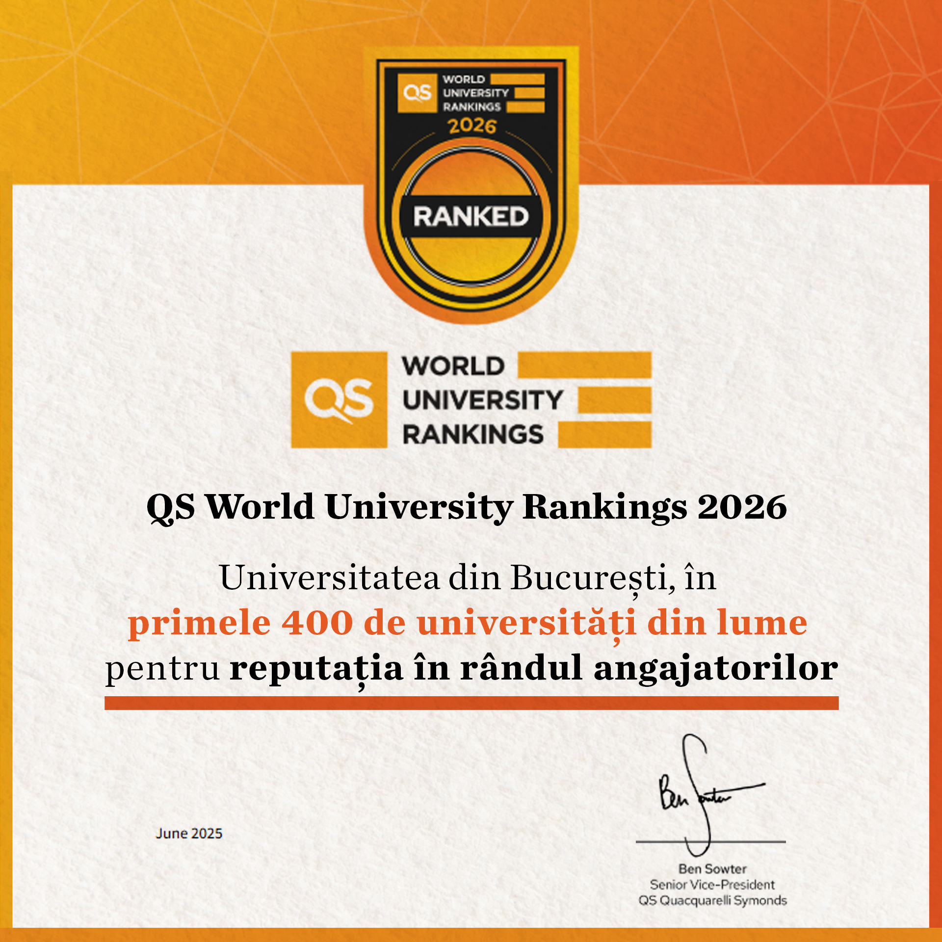 De altfel, așa cum arată datele celei mai recente ediții a clasamentului QS World University Rankings 2026, absolvenții Universității din București reușesc, într-o foarte mare măsură (81,1%), să se angajeze 7 – 11 luni de la finalizarea studiilor.
