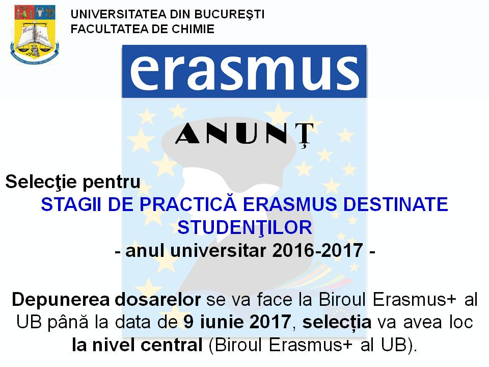 Anunț selecție stagii de practica Erasmus pentru studenti 2016/2017