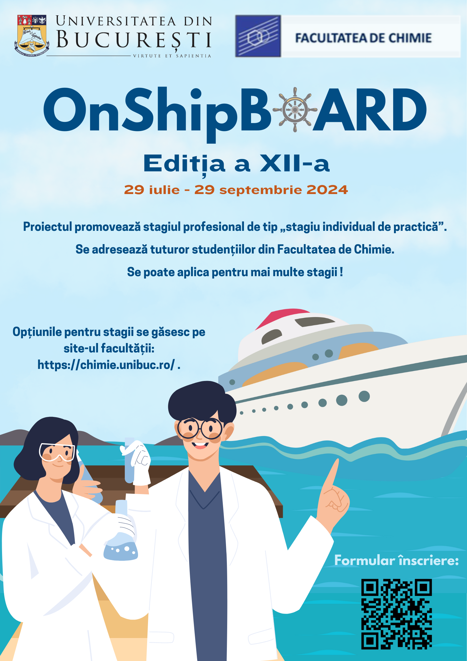 Dragi studenți ai Facultății de Chimie, din toate ciclurile de studii, a fost lansat proiectului On ShipBOARD 2024, ediţia a XII-a.